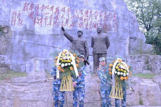 学生代表向邓小平同志、彭德怀同志塑像敬献花篮