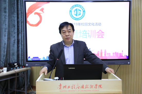会议伊始,校团委负责人首先介绍了2019年贵工程校园文化活动的总体概况,并介绍了校园文化活动开展的计划、步骤、目标等。同时,她对本年度校园文化活动的具体牵头部门承办项目做了详细介绍。