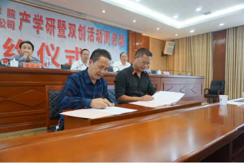 卢凤鹏与池猛分别代表贵工程和磐石建材签署了《校企合作协议书》。