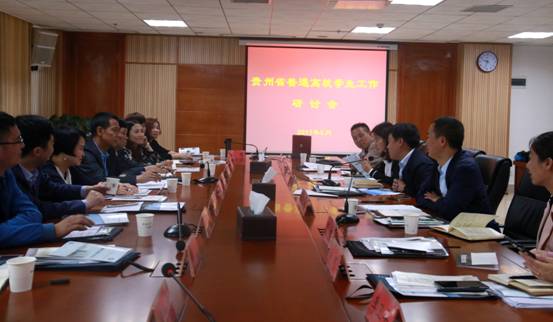为深入贯彻习近平总书记在全国高校思想政治工作会议上的讲话精神和《普通高校学生管理规定》(教育部令第41号),研究我省普通高校学生管理服务工作,开展“一站式”学生事务服务中心推广建设和检查验收工作“回头看”, 5月19日上午,贵州省普通高校工作研讨会在贵州工程应用技术学院西区综合楼802室召开,省教育厅学生处处长邓生井,我校党委副书记汤宇华出席会议,我校学生处、教务处以及贵州省其他高校学生处主要负责人参加会议。