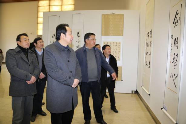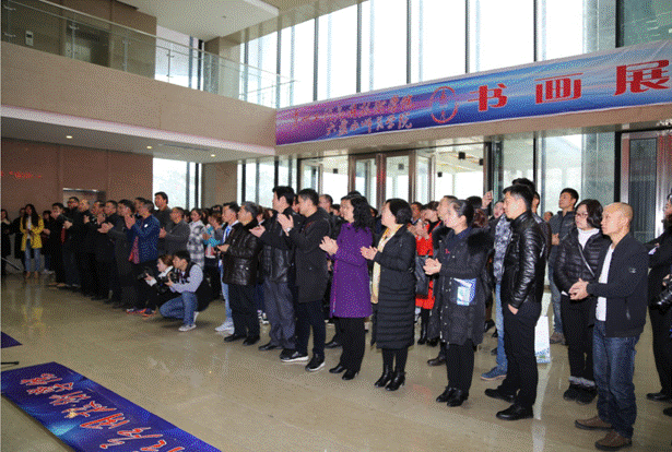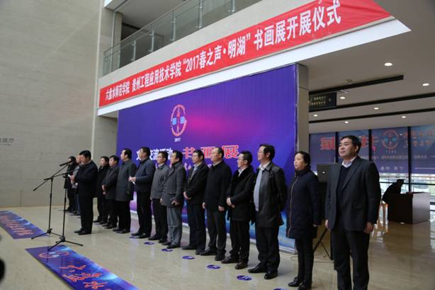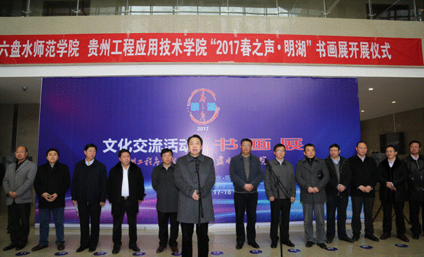 为贯彻落实习近平总书记在全国高校思想政治工作会议上提出的以文化人、以文育人的要求,贵州工程应用技术学院和六盘水师范学院经过共同协商,从今年起两校联合举办以书画联展为主要内容的文化交流活动,经过近半年的努力,3月18日上午,贵州工程应用技术学院和六盘水师范学院2017“春之声·明湖”文化交流活动之书画联展在六盘水师范学院文化馆开幕。