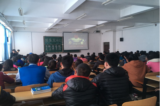 12月2日晚,学校党委宣传部和团委组织广大学生收看国家宪法日宣传片,接受宪法教育。在收看完宣传片后,同学们纷纷发表自己对于增强法律意识的看法。12月3日晚,“宪法日主题”座谈会上,学生们针对网购陷阱、消费权益保护、兼职协议法律效力等做了主题讨论,进一步提醒广大学生如何应用法律保护自身权益。12月4日的清晨,从弘毅楼教室里传出爽朗的宪法晨读的声音。“第一条,中华人民共和国是工人阶级领导的,以工农联盟为基础人民民主专政的社会主义国家。”晨读后,学生们回顾了“五四宪法”的制定和宪法发展历程,并通过学习我们国家的国体和政体,强调了公民的基本权利与义务,重申我们做为一名大学生应当深入了解我国法律法规,弘扬法治理念,坚定学习宪法、遵守宪法、维护宪法权威的信心和决心,做好祖国的接班人。