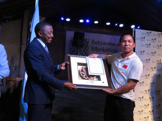 青年体育文化部部长奥洛蓬代表博茨瓦纳共和国为我校及体育学院教师周鹏颁发纪念品、奖章