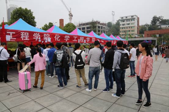迎新接待点设在明德广场,各院成立“迎新生志愿服务队”,用师哥师姐的热情、志愿者的爱心去迎接每一位新同学的到来,从报名处到注册处,再到寝室,处处涌动着他们忙碌的身影,拉皮箱、搬被褥和铺床,忙得不亦乐乎。志愿者在离开时还不忘留下电话号码,让新生有需要的时候及时联系上他们。
