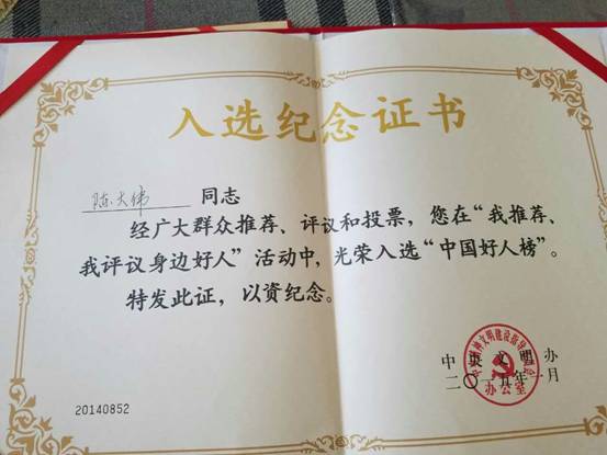 据了解,从2008年5月开始,中央文明办开展的“我推荐我评议身边好人”活动,发动城乡基层群众和广大网民举荐身边好人好事,每月推出100位助人为乐、见义勇为、诚实守信、敬业奉献、孝老爱亲的中国好人,该书收录了2014年度所有中国好人的先进事迹。赫章县白果镇派出所所长陈大伟(原毕节师范高等专科学校小教系2002级心理咨询专科班学生),作为一名人们警察,他机智勇敢,雷霆出击,多次救出人质,入选2014年2月“见义勇为”中国好人。同时,河镇乡海雀村老支书文朝入选2014年6月“敬业奉献”中国好人。