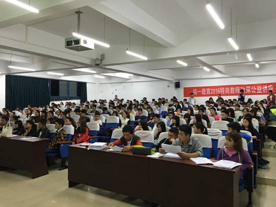 近日,教育部和财政部联合下发《关于做好2016年农村义务教育阶段学校教师特设岗位计划实施工作的通知》,我校高度重视,为让我校大学生更好参与基层项目就业,了解特岗教师考试的相关政策与信息。4月5日晚,由继续教育学院、学生处共同主办的“特岗教师招考政策公益讲座”在绣山B栋教学楼301教师举行,讲座邀请特岗教师知名培训专家、毕节铭一教育中心金牌讲师燕治娥担任主讲。全校各学院近200名大四学生参加讲座。