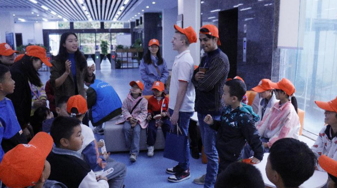 贵州工程应用技术学院图书馆(信息化管理中心)同时邀请了学校外籍留学生参与留守儿童的互动活动,通过活动的陪伴与交流,让小朋友们亲身体验到多元文化所蕴含的丰富文化内涵,在充满欢笑与感动的阅读空间里感受来自大学校园师生的满腔热情、善良用心与真诚友善,助力他们开阔视野,点燃知识梦想。