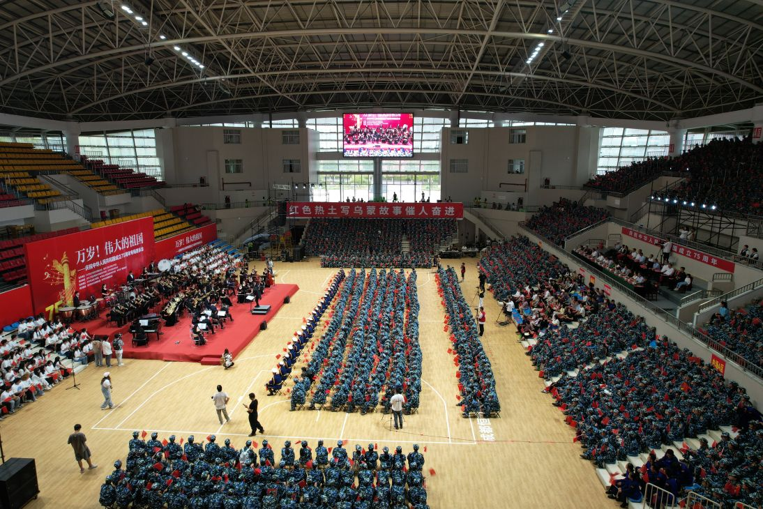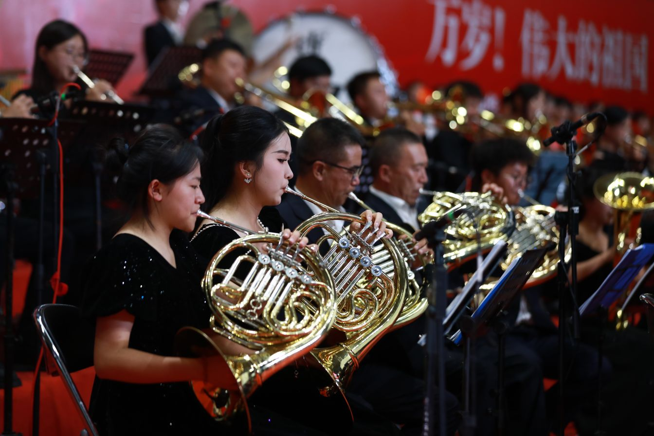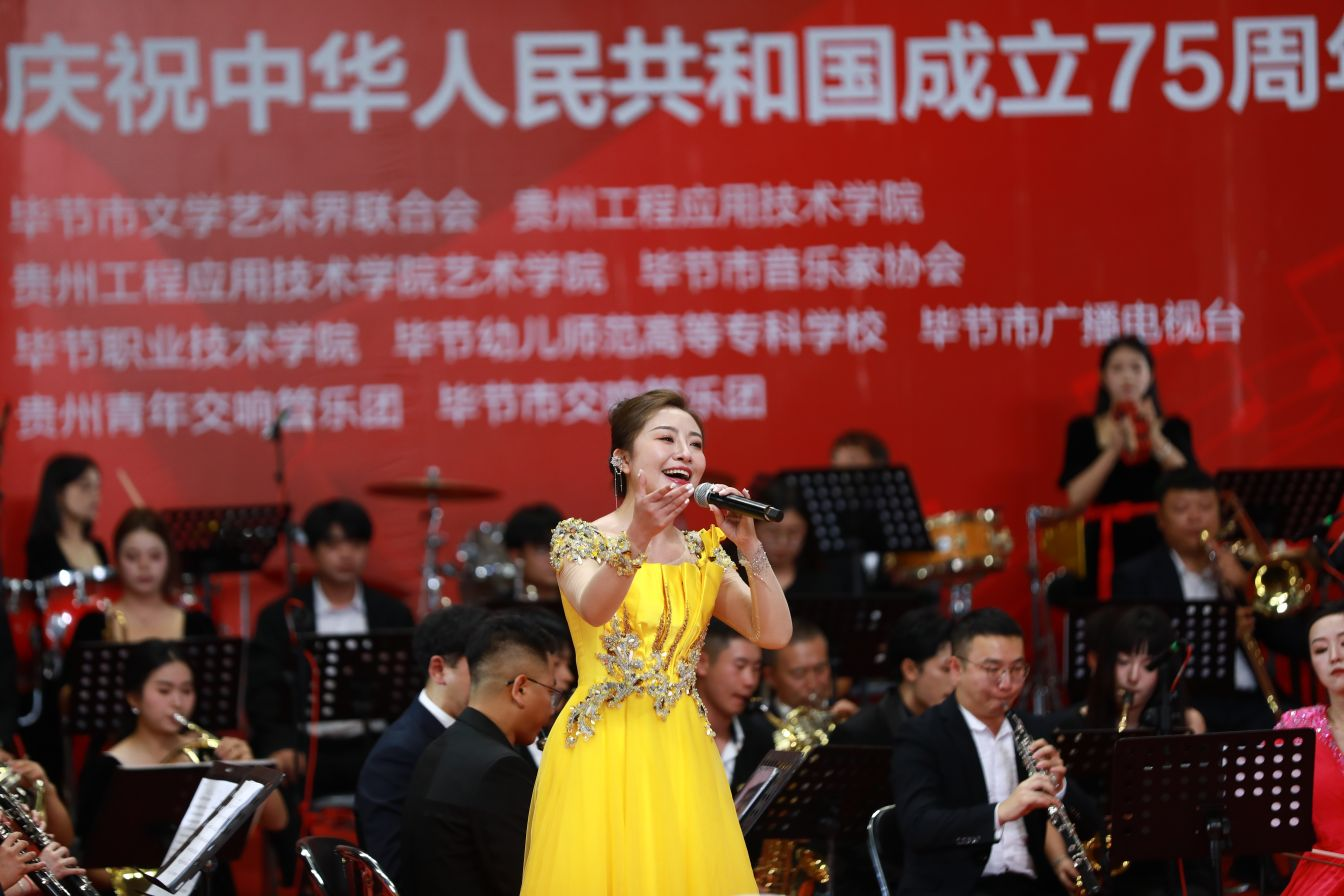 为隆重庆祝中华人民共和国成立75周年,充分发挥文艺的火炬、号角作用,团结引导广大文艺工作者,弘扬中华优秀传统文化,丰富人民群众精神文化生活,9月29日,毕节市文学艺术界联合会、贵州工程应用技术学院联合举办庆祝中华人民共和国成立75周年主题音乐会。市直相关单位、市内高校代表等4000余人在现场聆听。