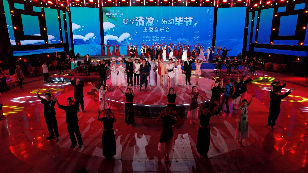(通讯员 谭青青 唐晓慧 郭思彤)乌蒙山连着山外山,响水滩夜里歌声燃。为积极响应省、市号召,以专业演出服务地方文旅建设,彰显高校担当,8月23日晚,由毕节市人民政府主办,毕节市委宣传部等承办,贵州工程应用技术学院执办的2025响水滩音乐季“畅享清凉·乐动毕节”大型主题音乐会在七星关区同心公园圆满落幕。现场观众席地而坐,110分钟的高燃演出让整个夜晚沸腾。贵州工程应用技术学院党委委员、副校长饶萍出席活动现场,并观看音乐会。