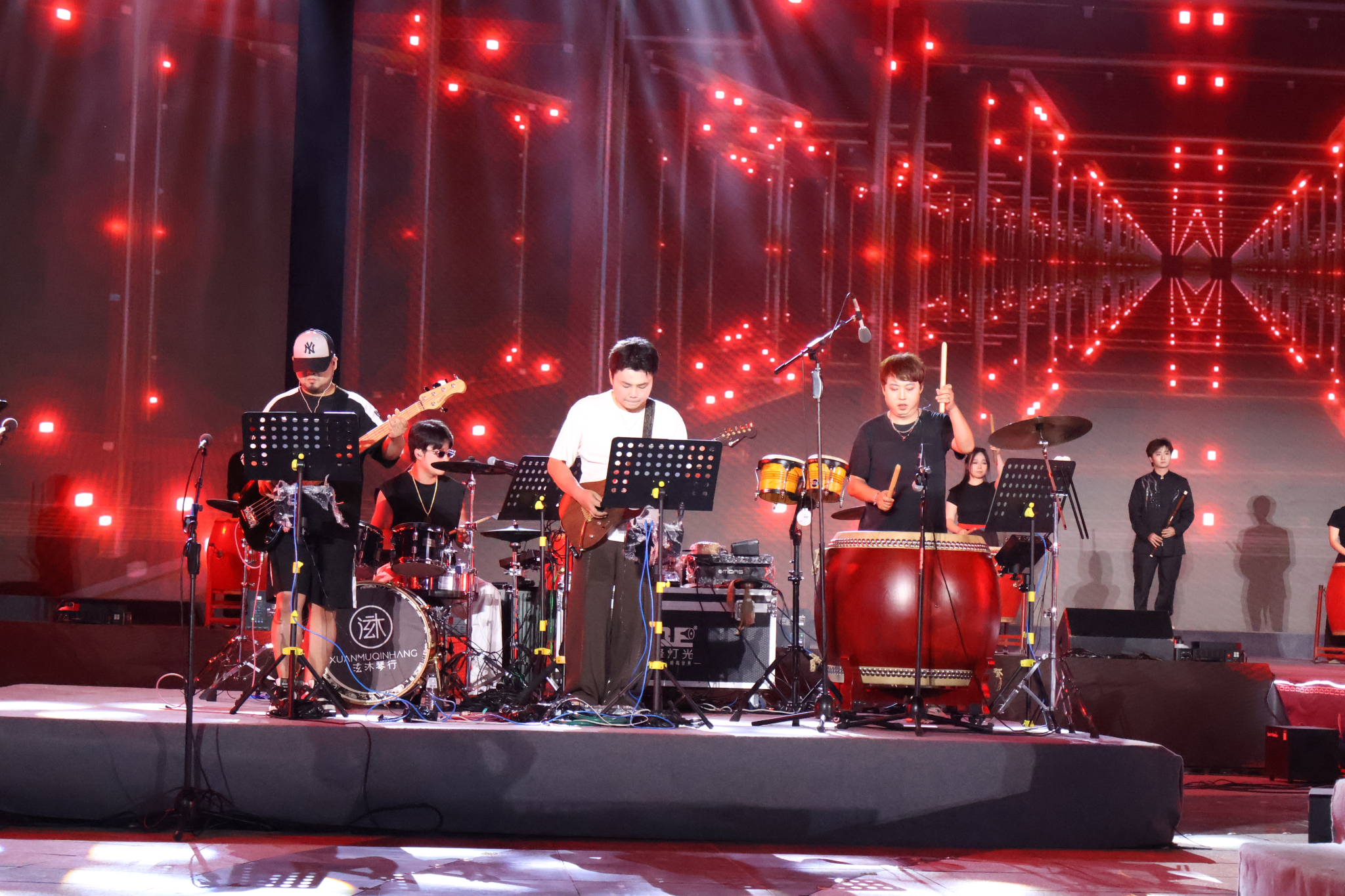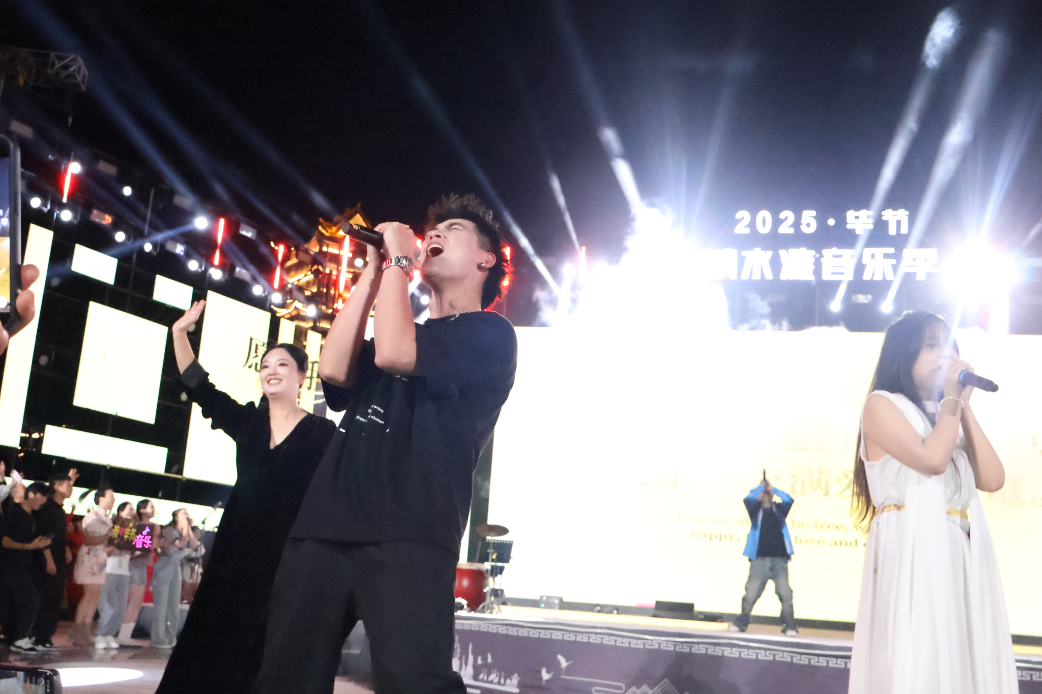 不同于传统音乐会的单一呈现,本场演出以“跨界融合”为核心亮点,将多元艺术形式巧妙串联——现场乐队活力伴奏,贵州工程应用技术学院艺术学院的实力唱将轮番登场,从民族风情到经典回忆,从流行潮流到家国情怀,多风格作品层层递进,为现场观众打造出一场兼具冲击力与感染力的双重视听盛宴。