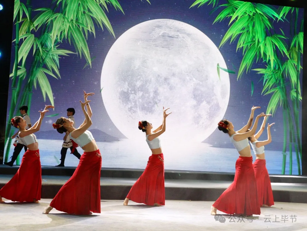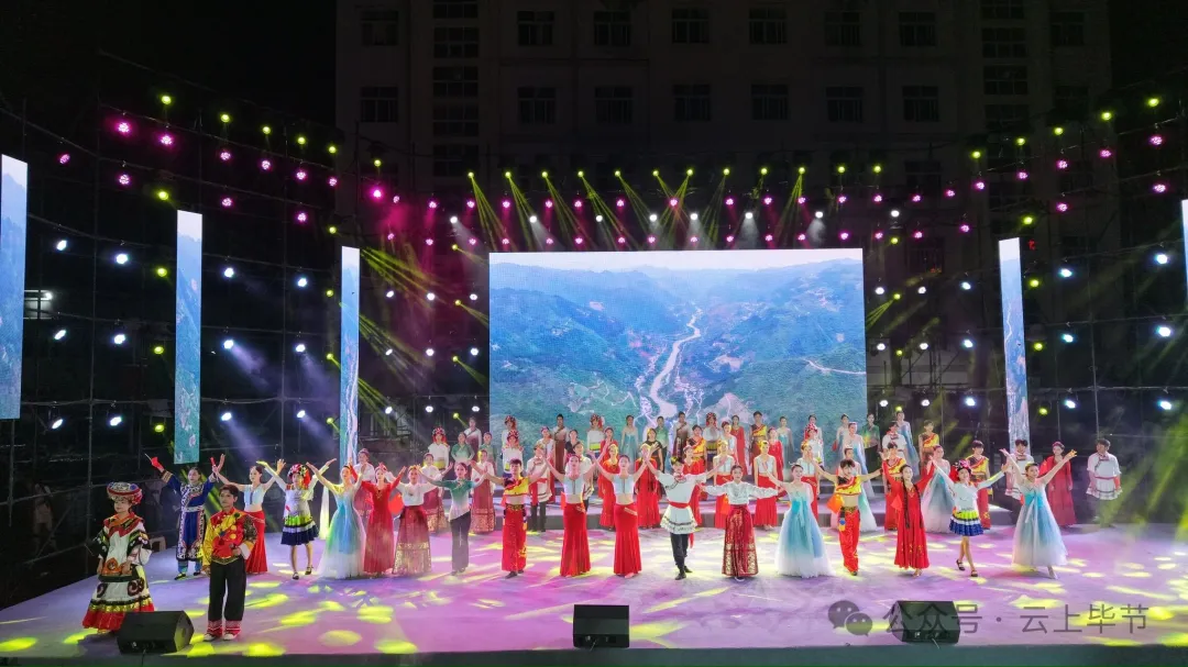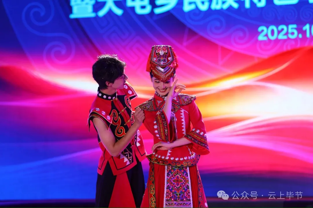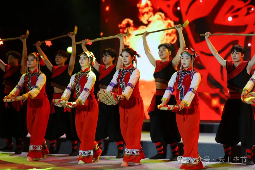 夜幕降临,由贵州工程应用技术学院艺术学院打造的开市文艺演出登场。以“祈福·迎客”开篇,通过“非遗大屯”“美丽大屯”“团结大屯”“奋进大屯”四个篇章呈现彝族布摩祈福、衣角舞、彝族婚俗情景剧等节目,实现传统与现代文化的交融。