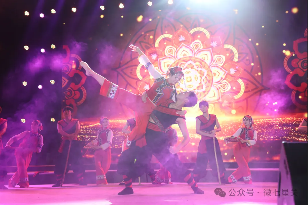 “团结大屯”篇章中,身着各民族服饰的演员手拉手载歌载舞,生动诠释了各民族和睦相处、携手共进的美好图景。“奋进大屯”篇章中,气势磅礴的原创民乐合奏曲展现出大屯乡干部群众团结奋进的胸怀与气魄。