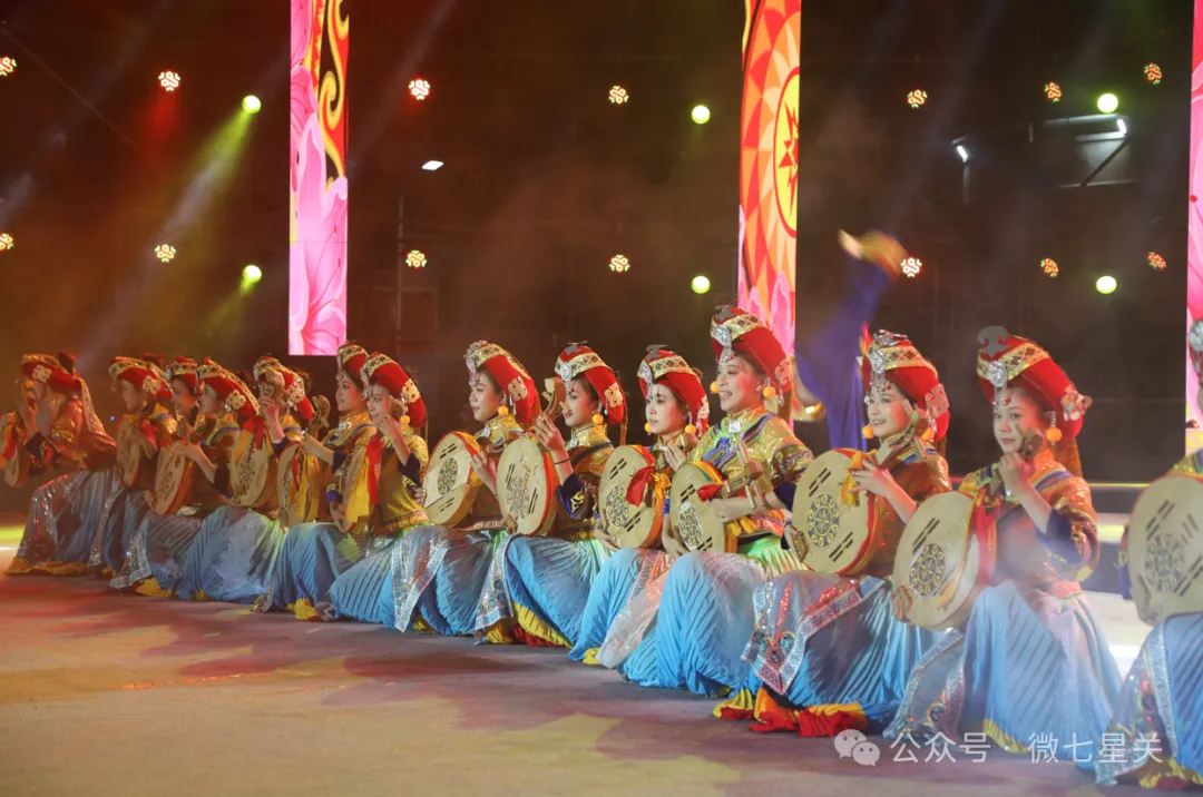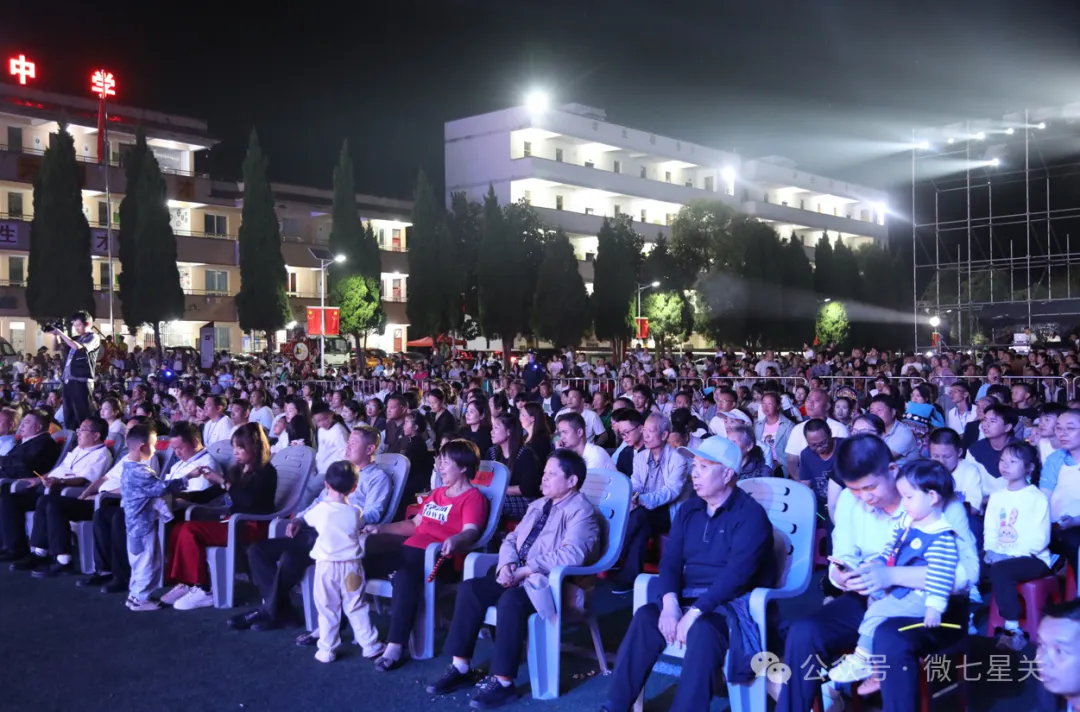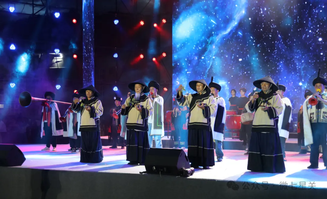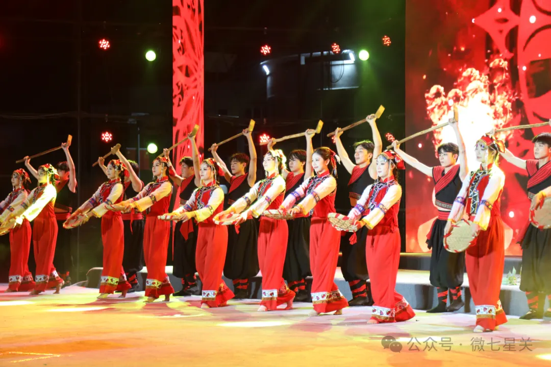 夜幕降临,大屯中学操场上灯光璀璨,一场以“祈福·迎客”为序的文艺演出将当天的活动推向高潮。