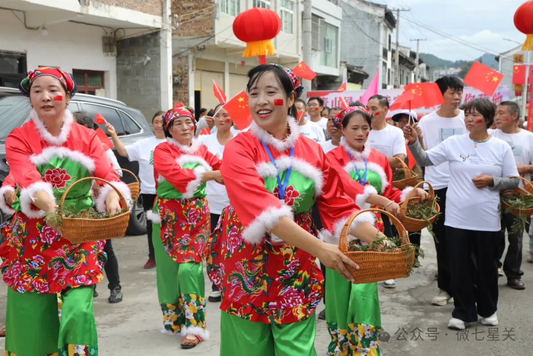 揭牌仪式后,一场充满民族韵味的巡游盛典拉开帷幕。来自全乡的8个方阵、240余名演员身着绚丽的节日盛装,沿着特色小街缓缓前行,非遗传承人们手持唢呐,高亢嘹亮的曲调响彻街巷。