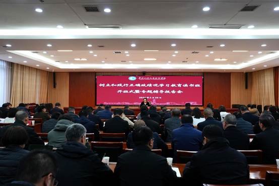 3月20日,贵州工程应用技术学院在西区综合楼1202会议室举行树立和践行正确政绩观学习教育读书班开班式暨专题辅导报告会,贵州工程应用技术学院党委书记熊星作开班讲话并进行专题辅导。