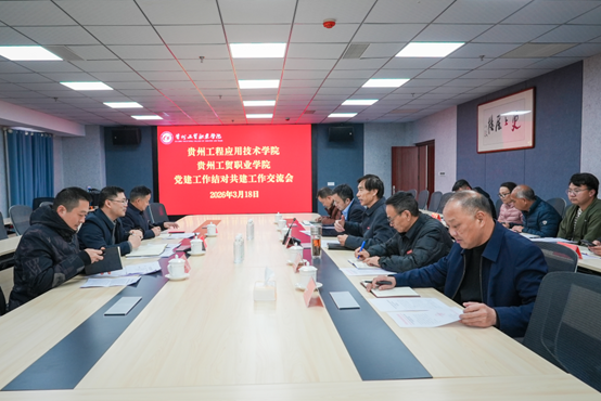 会上,勒系琳简要介绍了贵州工程应用技术学院基本情况,并感谢贵州工程应用技术学院对贵州工贸职业学院在党建结对共建中给予的大力支持;聂立新介绍了2025年以来两校党建工作结对共建取得的阶段性成果,并提出了2026年党建结对共建清单,涵盖联办主题党日活动、组织党员教育培训、党建相关课题研究、党建品牌打造、党员互动交流、“马院”+“书院”建设、党建引领业务高质量发展等方面内容;贵州工程应用技术学院王桂红对党建结对共建清单逐一进行了回应,并给出了切实可行的方案。