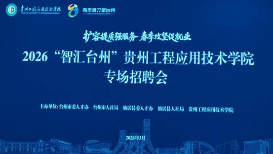 此次招聘会是贵州工程应用技术学院深入学习贯彻习近平总书记关于高校毕业生就业工作的重要指示精神、落实全国高校毕业生等青年就业创业工作视频会议部署的务实行动,也是贵州工程应用技术学院将就业教育与就业引导深度融入“三全育人”体系、扎实推进就业育人工作的关键举措。活动由台州市委人才办、台州市人力社保局、仙居县委人才办、仙居县人力社保局与贵州工程应用技术学院联合主办,以“扩容提质强服务春季攻坚促就业”为主题,精准搭建政校企协同的高质量就业对接平台,为贵州工程应用技术学院毕业生打开赴浙发展、建功立业的广阔通道。