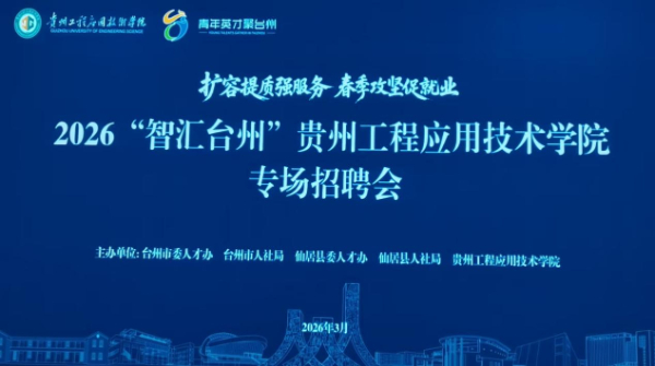 此次招聘会是贵州工程应用技术学院落实全国高校毕业生等青年就业创业工作视频会议部署的务实行动,也是贵州工程应用技术学院将就业教育与就业引导深度融入“三全育人”体系、扎实推进就业育人工作的关键举措。活动由台州市委人才办、台州市人力社保局、仙居县委人才办、仙居县人力社保局与贵州工程应用技术学院联合主办,以“扩容提质强服务 春季攻坚促就业”为主题,精准搭建政校企协同的高质量就业对接平台,为贵州工程应用技术学院毕业生打开赴浙发展、建功立业的广阔通道。