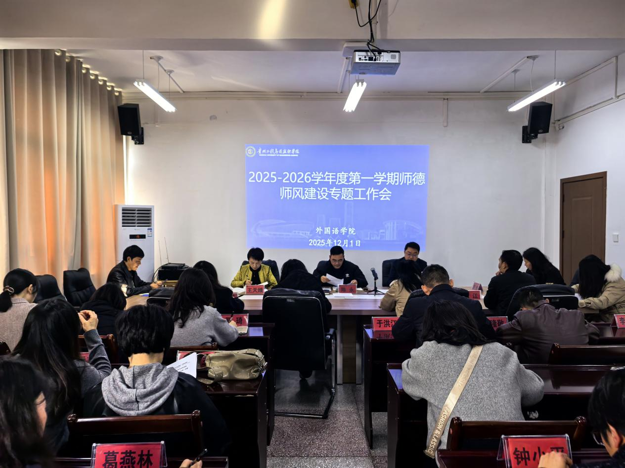 根据学校《关于开展师德失范典型案例通报警示教育工作的通知》精神和要求,进一步巩固师德师风建设成效,提升教师职业道德素养,落实立德树人根本任务,外国语学院于12月1日召开2025-2026学年第一学期师德师风建设专题工作会。会议由学院党总支书记陈永主持,全体教职工参加。