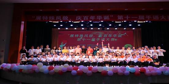 本次比赛分为专业组和非专业组。经过初赛,共有十二支队伍晋级决赛。首先《灯火里的中国》表演赢得满堂喝彩,充分调动了现场观众的热情。接下来的《唱支山歌给党听》、《向党致敬》也被同学们演绎得舒缓温暖,从他们精彩的表演之中,我们感受到了手语表演的独特魅力。其中,《我的祖国》的表演动作和谐有力,节奏明快,默契的配合,饱满热情的精神面貌让人感受到强烈的爱国气息;《我爱你中国》以多变的队形,饱满的精神,整齐划一的手语动作,赢得了阵阵喝彩。最后,比赛在《国家》激情的演绎中落下帷幕。