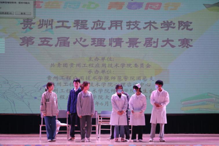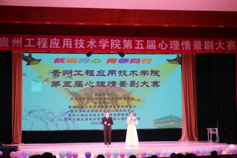 2022年6月7日晚7:15,由共青团贵州工程应用技术学院委员会主办,贵州工程应用技术学院师范学院团总支、贵州工程应用技术学院心理咨询中心、贵州工程应用技术学院师范学院学生会、贵州工程应用技术学院大学生心理健康协会承办的“抗疫同心,青春同行”第五届心理情景剧大赛在正心礼堂举行。此次大赛的评委老师分别是毕节职业技术学院孙丛亮、毕节市教育局二级主任科员靳文豪以及七星关区未成年人心理辅导站查富、朱云邵春兰老师,出席的嘉宾有师范学院团总支书记肖正、心理咨询中心专职教师曾薇和丰丽红老师。