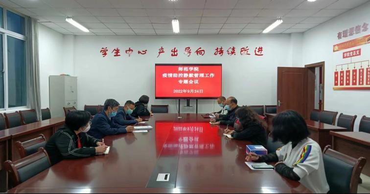 9月25日晚,师范学院在特教大楼D栋418会议室召开疫情防控静默管理工作会议,会议由李华书记主持,师范学院疫情防控小组全体成员参会。