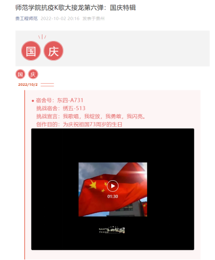 在同学们积极参加活动的同时,老师们也不例外。10月5日,师范学院在校参加疫情防控的老师们也在特教楼会议室拉开场面,建立“师生抗疫及迎接二十大K歌”的超星课堂,开展大型线上K歌活动,师范学院全院师生参与,全场直播师生合唱《东方红,太阳升》《我和我的祖国》等红色歌曲,将同学们的激情推到最高点!