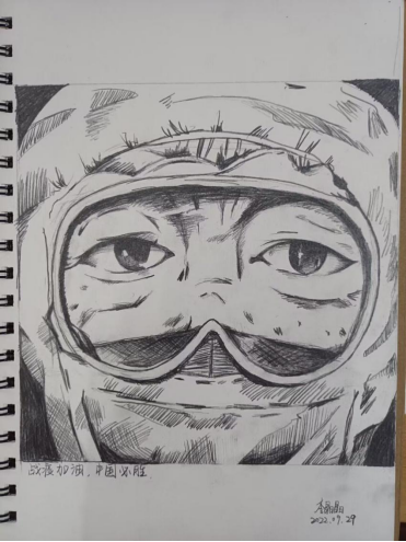 22教育三班李晶晶绘画作品《战疫加油,中国必胜》