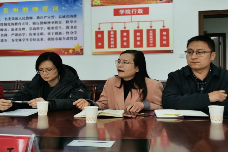 听完汇报后,李琳副校长与大家展开交流与讨论,分析了学院当前面临的挑战和机遇,指出了学院的重点任务,并对进一步加强学院建设提出了要求。他强调,学院要充分挖掘多年的办学特色,做优“师范”;要摸清底数,抓住重点,有组织地开展教学科研工作。他要求,一是要进一步明确发展目标,聚焦学科专业、科学研究、师资队伍、人才培养等工作,全面查找差距,补齐短板,挖掘专业增长点,论证申报新专业,培育特色优势;二是要进一步论证好毕节基础教育研究中心建设方案,立足教育硕士点谋划建设与发展,努力提升服务毕节示范区基础教育的能力。