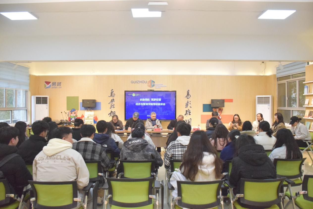 为精准助力考研学子科学备考、缓解备考压力、明确复习方向,2026年3月23日下午,经济与管理学院在仲群楼107易班活动室召开考研专题座谈会。学院党总支书记张翔、院长王军、党总支副书记唐纲出席座谈会,学院各科室负责人、教师代表以及28余名学生参会,本次座谈会由赵曼老师主持。