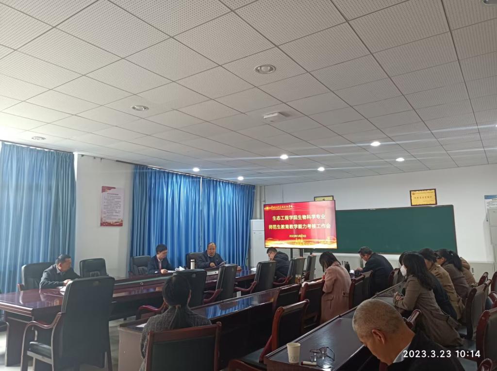 为进一步提高师范专业学生教育教学能力,确保生物科学专业人才培养质量,检验和巩固生物科学专业学生教育见习、教育实习、教育研习效果,我院于2023年3月23日召开生物科学师范生教育教学能力考核工作部署会,学院领导、相关科室负责人、生物科学专业全体任教老师参加。