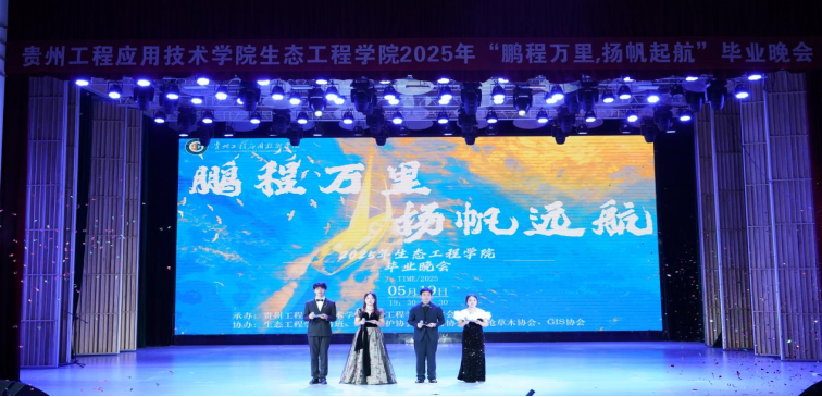 5月19日晚,生态工程学院"鹏程万里,扬帆起航"2025年毕业晚会在学校秋逸音乐厅举行。学院师生齐聚一堂,共同见证毕业生告别校园、启航未来的难忘时刻。