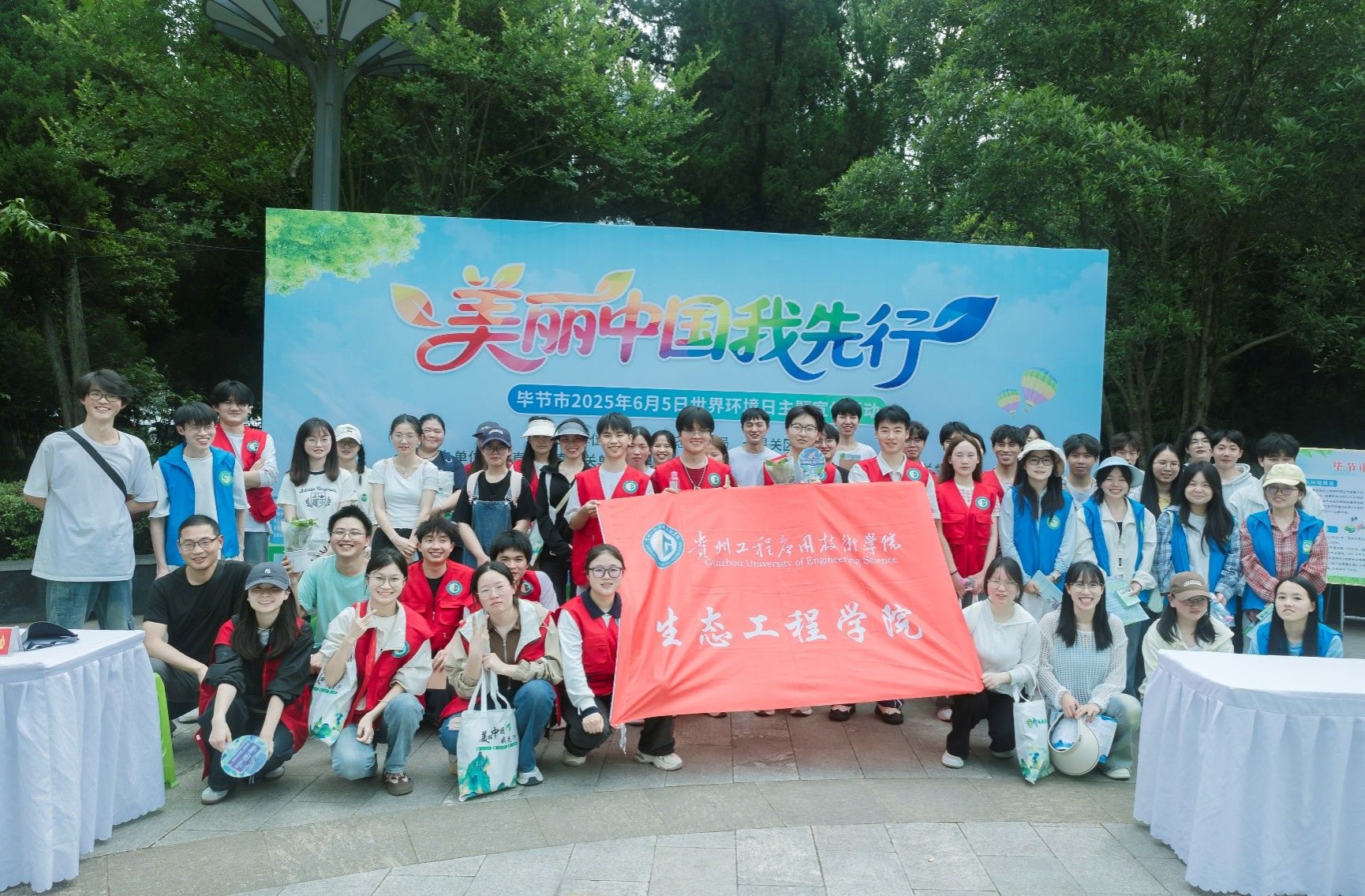 6月5日是“世界环境日”,为深入学习宣传贯彻习近平生态文明思想,广泛动员全社会支持参与生态环境保护,通过丰富的形式引导社会公众践行绿色低碳生活方式,共同推进美丽贵州、美丽毕节建设,2025年6月5日,由毕节市生态环境局和七星关区人民政府主办的毕节市六五环境日主题专场宣传活动在七星关区人民公园开展,贵州工程应用技术学院生态工程学院的部分师生参与活动。