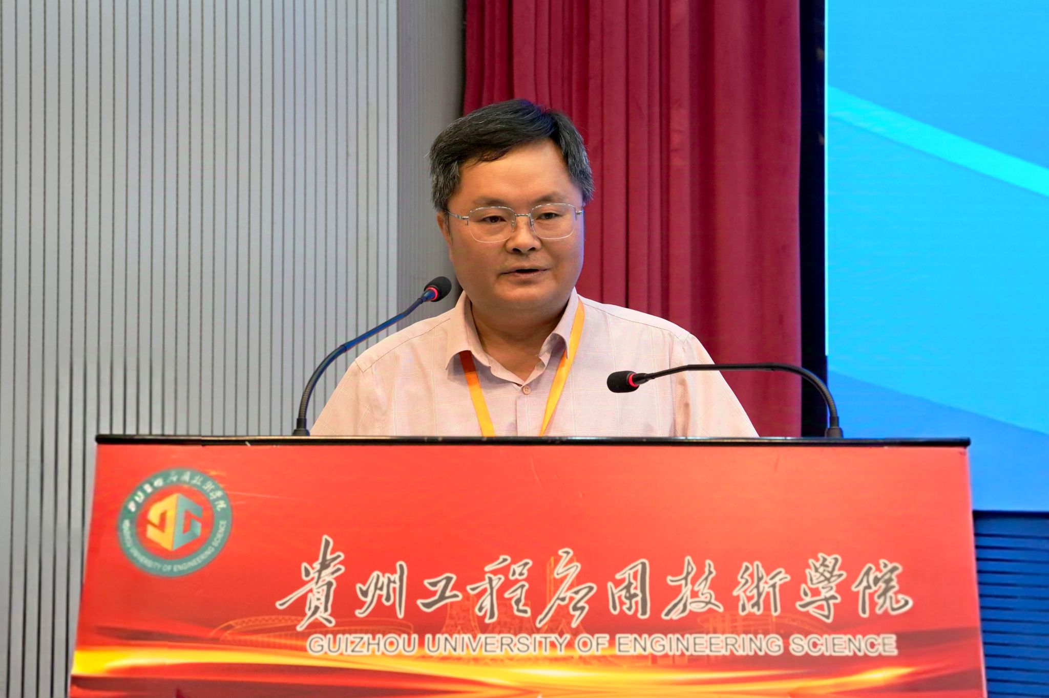 学会理事长文晓鹏教授代表理事会致辞,他对年会的召开表示祝贺,并代表大会组委会向到会的领导、专家及共同主办单位贵州工程应用技术学院表示衷心的感谢。