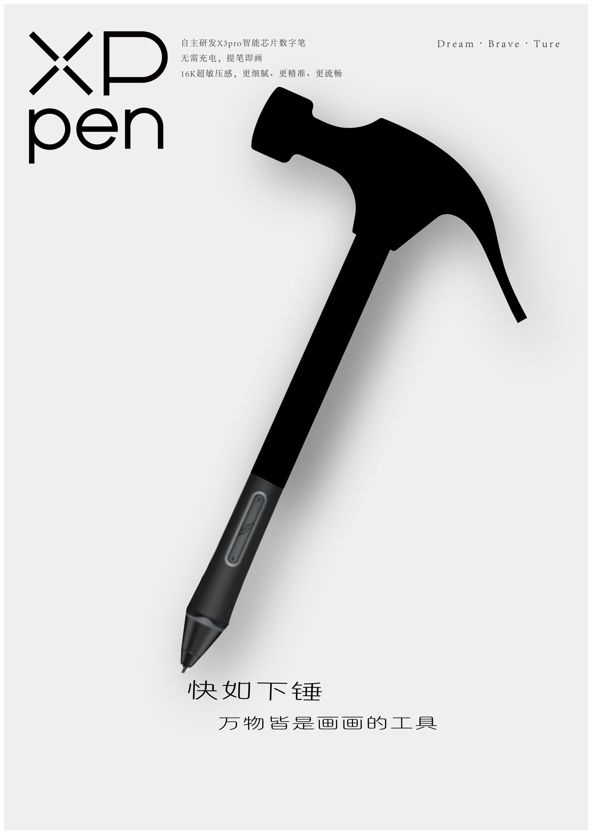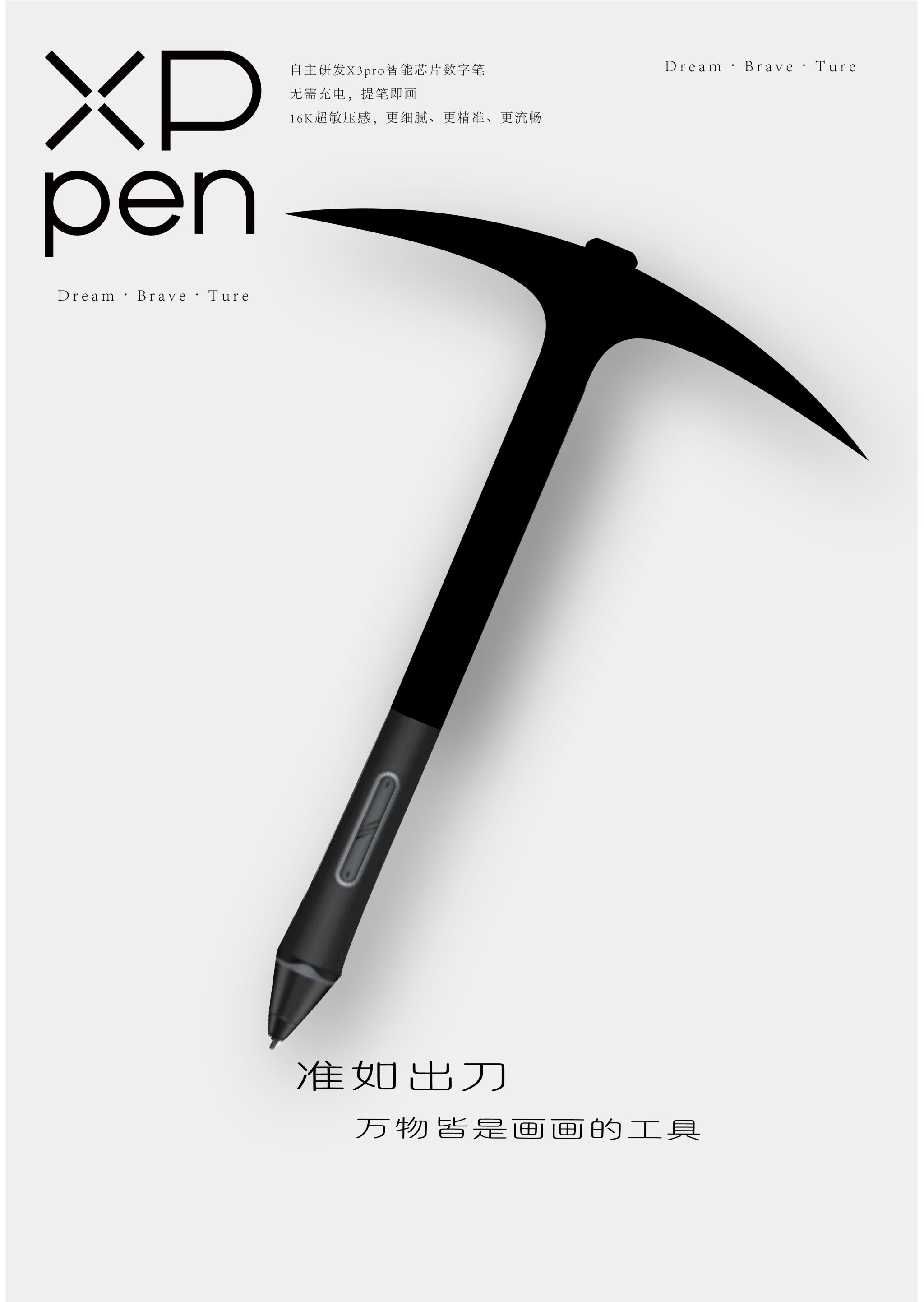 作品简介:以Xppen产品的高灵敏度,抗干扰,更稳定等特点为概念,结合生活中的锤子,铲子,镰刀等常用工具,同构出新颖的视觉形象,引人思考,将xppen产品优异的性能及操作简便、功能强大的特点表现得淋漓尽致。