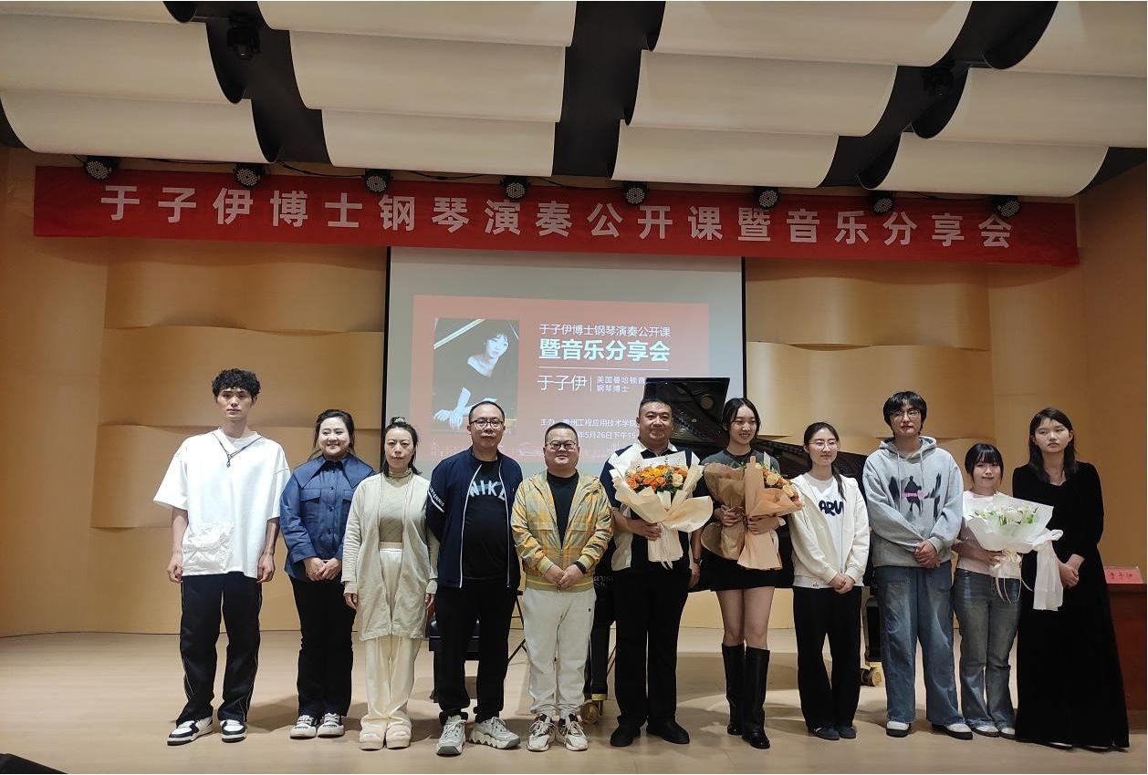 活动最后,艺术学院相关领导、师生们纷纷上台与于子伊博士合影留念,学生代表献上鲜花表达感谢。本次活动的开展不仅提升了艺术学院的学术氛围,也为钢琴专业教学注入了新的活力。未来,贵工程艺术学院将继续邀请国内外顶尖艺术家交流指导,推动我校艺术教育的高质量创新发展。