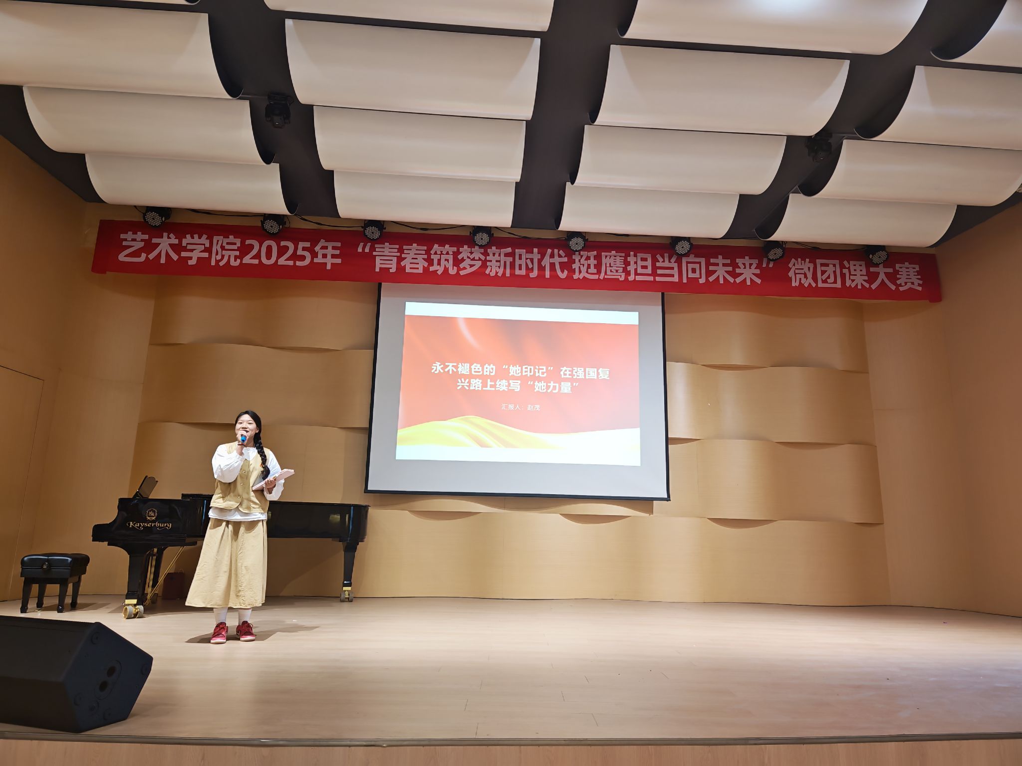 比赛现场,每位参赛者紧扣主题,结合自身的学习与生活感悟,用生动的案例和富有感染力的情感,将团课内容娓娓道来。经过激烈的角逐,音乐学专业2022级2班团支部书记赵茂讲授的团课《永不退色的“她印记”,在强国复兴路上续写“她力量”》斩获一等奖。