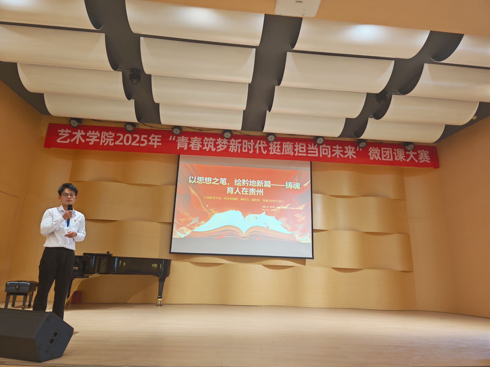 此次比赛充分展示了艺术学院团干部的风采和实力,是对团干部理论水平、专业素养和工作能力的全面检验,也进一步推动了党的创新理论在校园内的传播。未来,艺术学院将持续深化“微团课”竞赛活动,引领广大青年在实践中学思践悟,让青春在党和人民最需要的地方绽放绚丽之花。