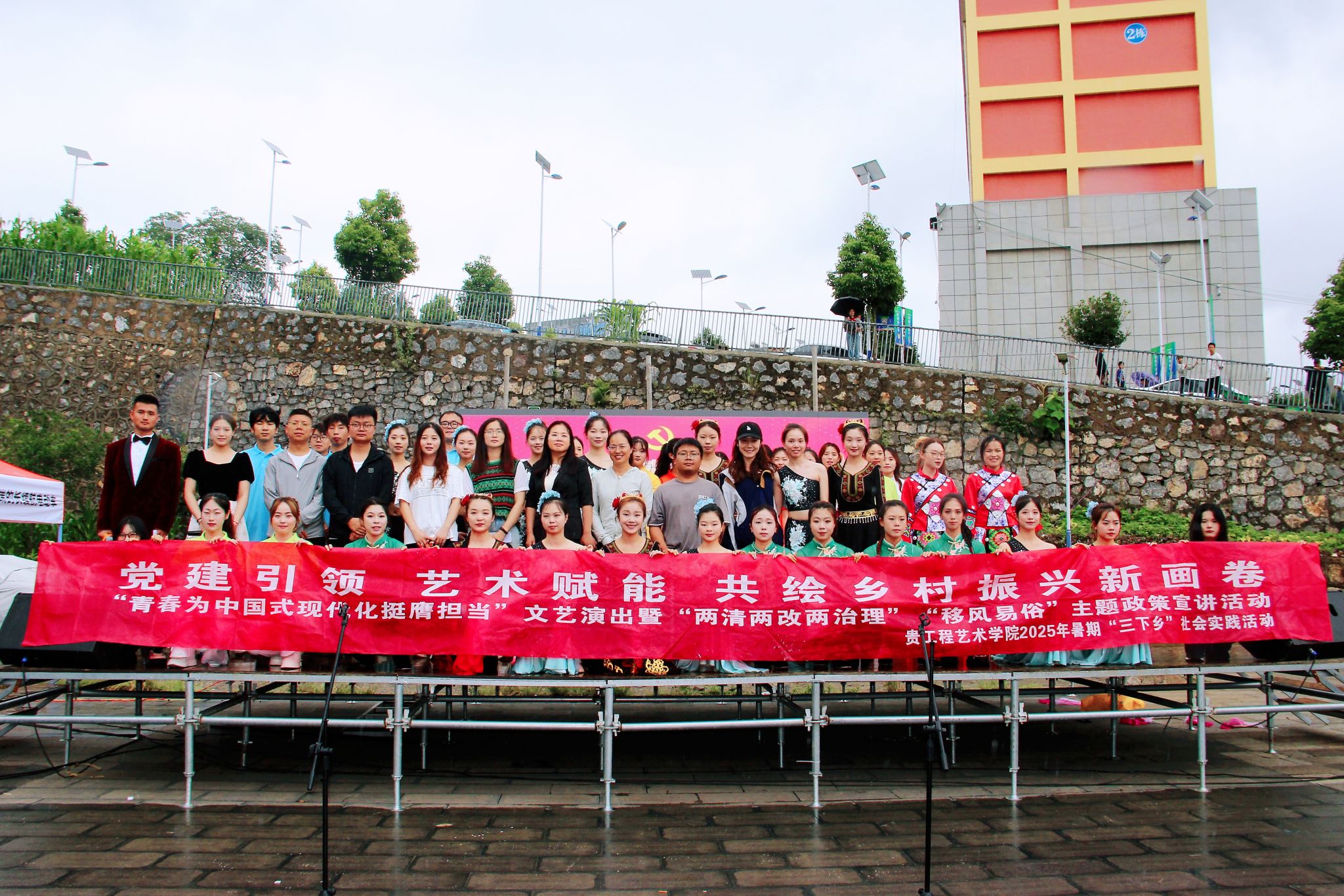 为引导青年学子学习贯彻习近平总书记赴贵州考察时的重要讲话精神,积极投身乡村振兴事业,7月9日,贵州工程应用技术学院暑期“三下乡”志愿者赴毕节赫章朱明开展“青春为中国式现代化挺膺担当”文艺演出暨“两清两改两治理”“移风易俗”政策宣传活动,将党的好声音、好政策传播到千家万户。
