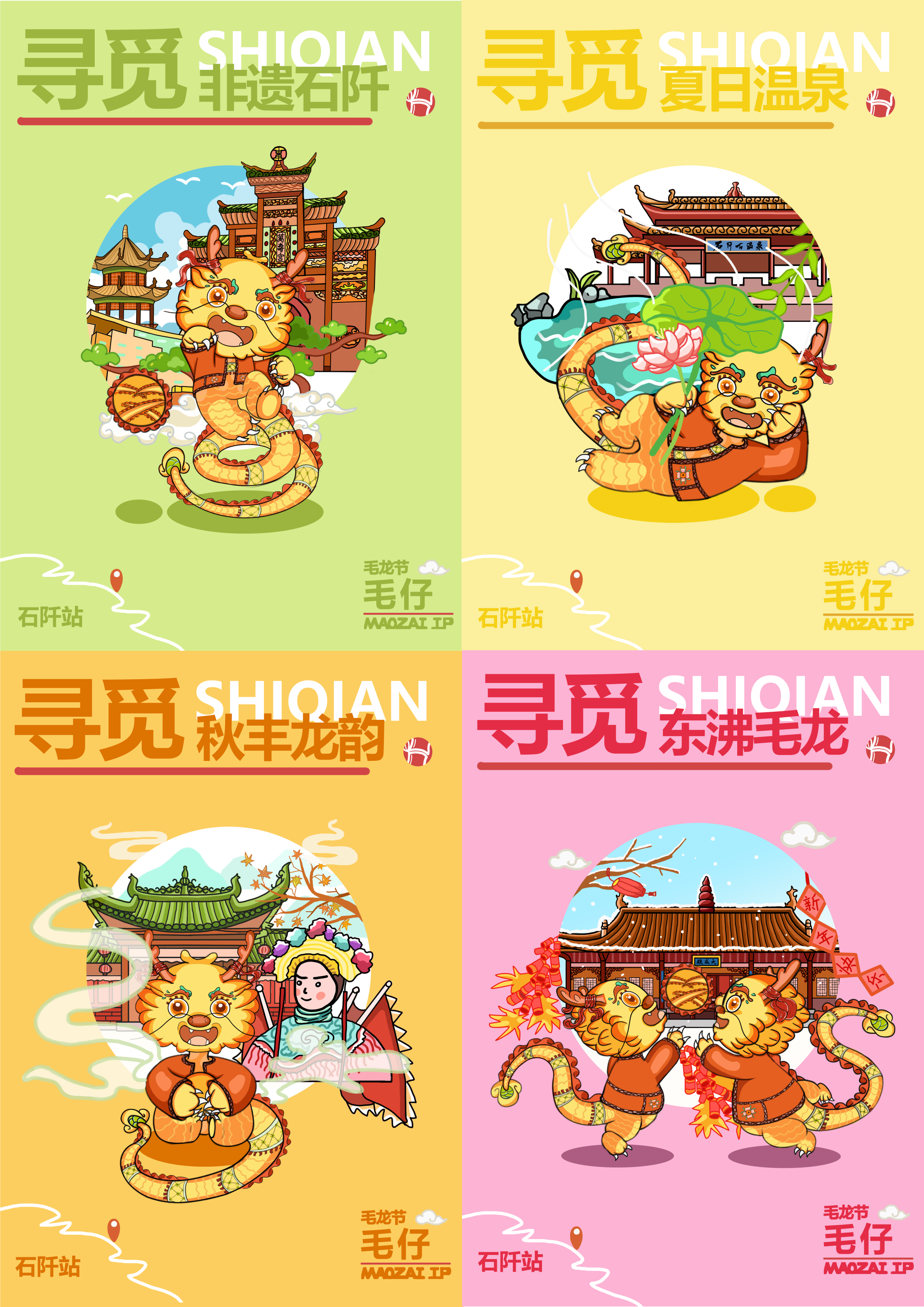 作品简介:石阡县仡佬族毛龙节是世代流传下来的“闹元宵、送吉祥”的表现形式之一。目前,石阡县仡佬族毛龙节作为国家级非物质文化遗产,面临传承断层、年轻群体关注度低等问题。仡佬族毛龙节作为仡佬族信仰的显现标志,其所蕴含的图腾崇拜、宗教崇拜以及仡佬族语言、工艺、歌舞等内容,对研究仡佬族文化具有重要的研究价值。本课题旨在通过研究仡佬族毛龙节中所蕴含着的丰富文化价值和艺术魅力,通过提炼毛龙节核心文化符号,结合现代设计语言,打造兼具文化内涵与市场价值的毛龙节IP形象视觉符号,吸引年轻群体关注,推动非遗文化融入到当代生活,提升公众对仡佬族文化的认知,同时加强民族认同,搭建起人与自然、人与社会之间的情感桥梁,实现文化的可持续发展。