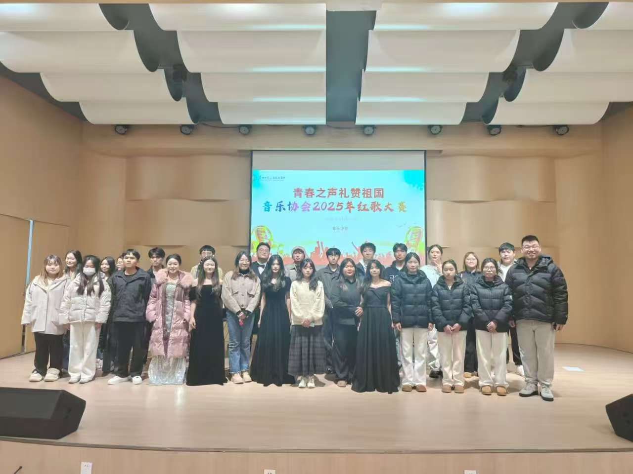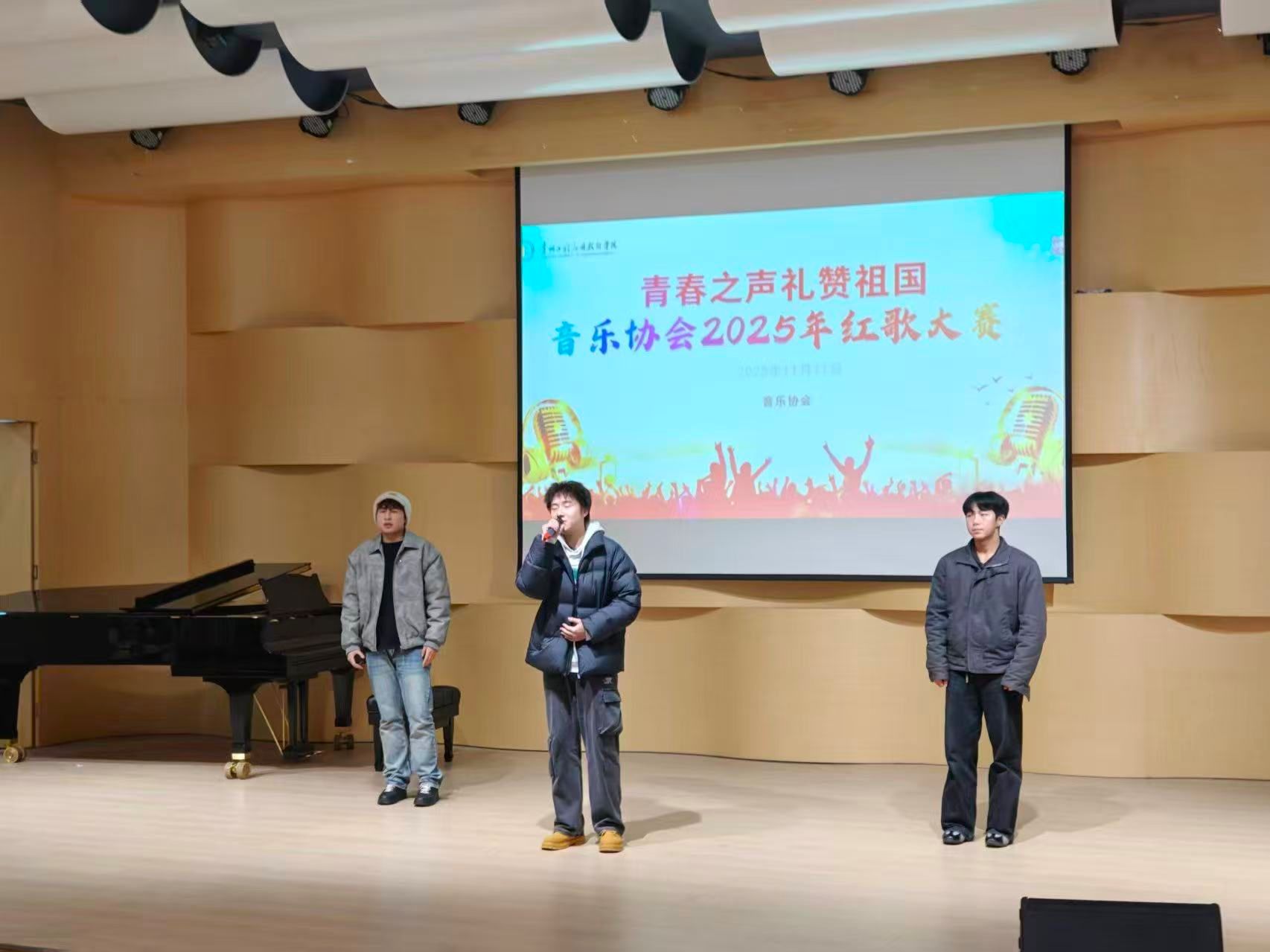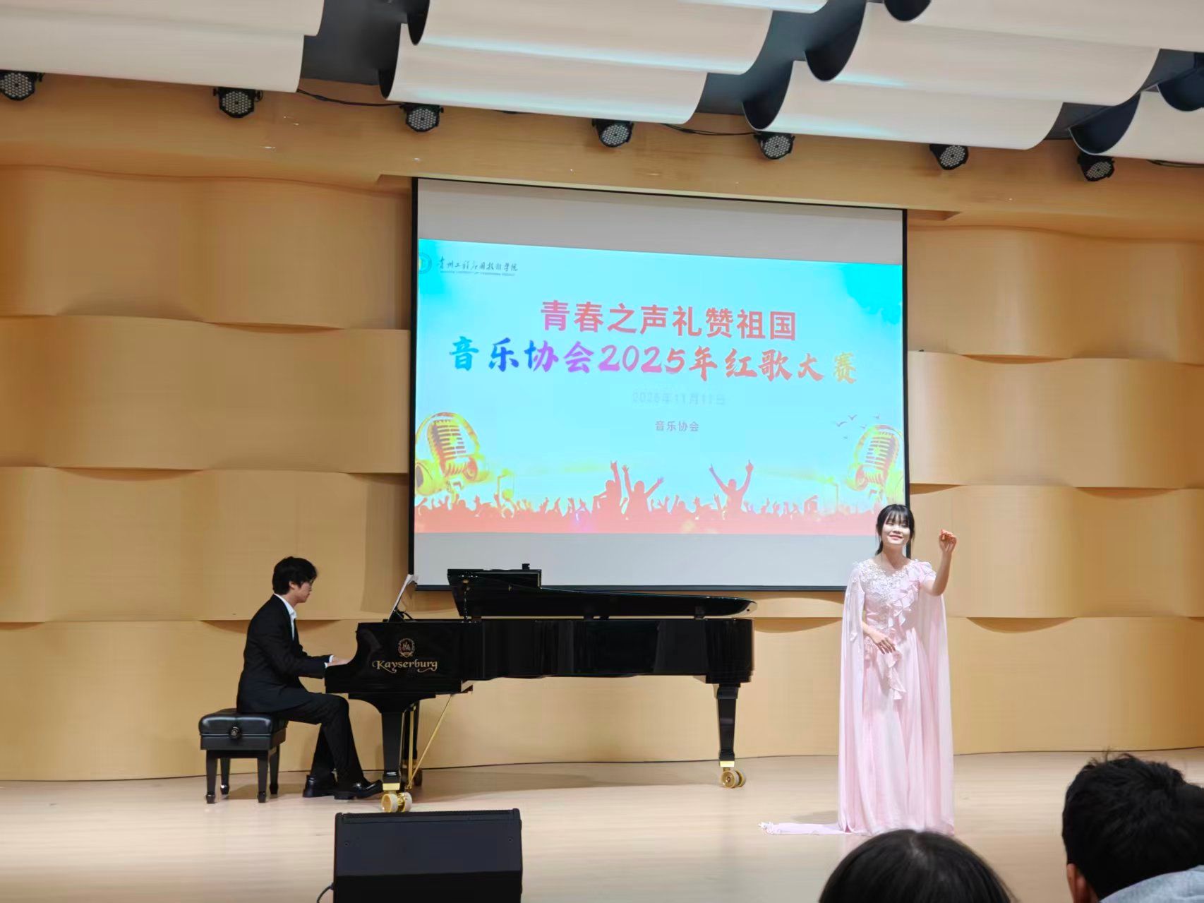 为纪念中国人民抗日战争暨世界反法西斯战争胜利80周年,11月19日晚19:00,我校大学生音乐协会精心策划并成功举办了以“青春之声,礼赞祖国”为主题的红歌大赛。活动旨在通过传唱经典红色歌曲,引导广大青年学生重温峥嵘岁月,传承红色基因,弘扬以爱国主义为核心的伟大民族精神。