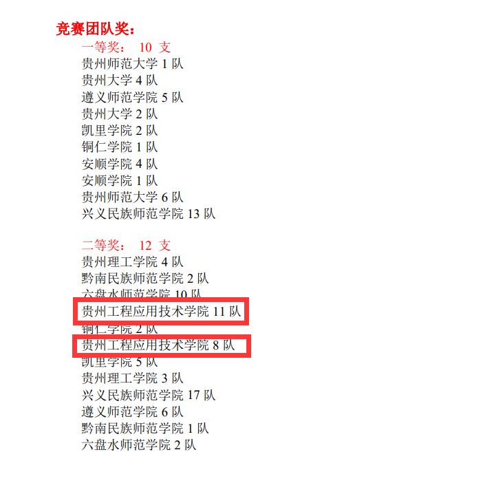 在第五届贵州省大学生物理学术竞赛中,理学院学生荣获二等奖2项(1、贵州工程应用技术学院11队;2、贵州工程应用技术学院8队)。