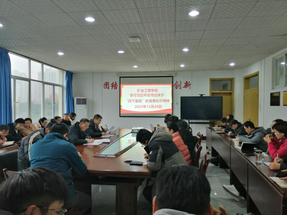 2023年12月26日,我院在会议室组织全体教职工学习习近平总书记关于“四下基层”的重要批示精神。会议由党总支副书记、院长刘吉波主持。