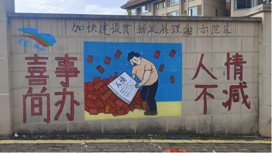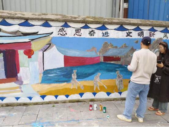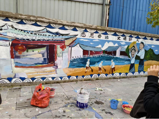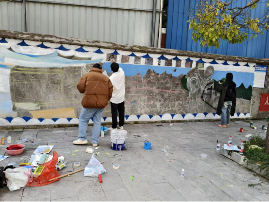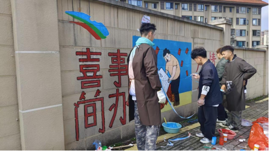 活动聚焦社区“软硬件”环境同步提升,致力增强居民的获得感和幸福感。在专业教师指导下,同学们以传统建筑与现代生活相融合为创作理念,绘制出色彩鲜明、内容生动的墙绘作品。壁画通过细腻笔触与丰富色彩,生动呈现了抵制不良风气、倡导文明新风的主题意象。