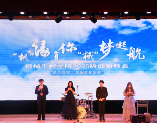 秋风送爽,丹桂飘香。为欢迎2025级新生开启大学新征程,助力他们更快更好融入学院大家庭,2025年10月27日晚,我院“机缘有你,械梦起航”迎新晚会于正心礼堂隆重举行。学院党总支书记熊斌、院长晋芳伟、党总支副书记陈克琴及全体教师出席晚会,与新生们共同见证了这一温暖而精彩的时刻。