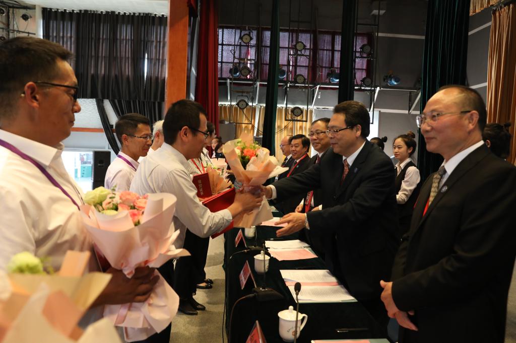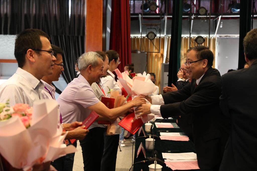 汤宇华主持并宣读30年教龄荣誉称号获得者名单