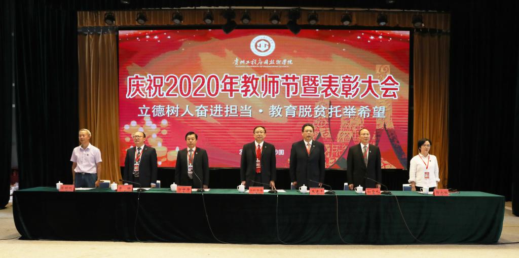 会上,参会人员全体起立奏唱中华人民共和国国歌;令狐荣锋致辞;新进教师作入职宣誓;李琳宣读贵州工程应用技术学院优秀教师、优秀教育工作者、优秀思想政治理论课教师表彰文件;向贤礼宣读2020年光荣退休教职工名单;汤宇华宣读30年教龄荣誉称号获得者名单;校领导为获奖者颁发奖金及证书;优秀教师代表彭雪莲发言;王建平讲话;最后,全体人员起立合唱《歌唱祖国》,大会在雄壮的乐曲声中圆满落下帷幕。