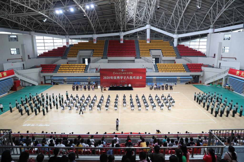 9月10日下午,贵工程2020年优秀学子入伍欢送会在绣山体育馆举行。校党委书记令狐荣锋,党委副书记汤宇华、向贤礼,纪委书记郭永红,七星关区人民武部部长、上校杨霆出席,相关职能部门负责人、各学院党总支书记、副书记、学生科、团总支负责人、辅导员、班主任和学生代表参加会议。会议由汤宇华主持。