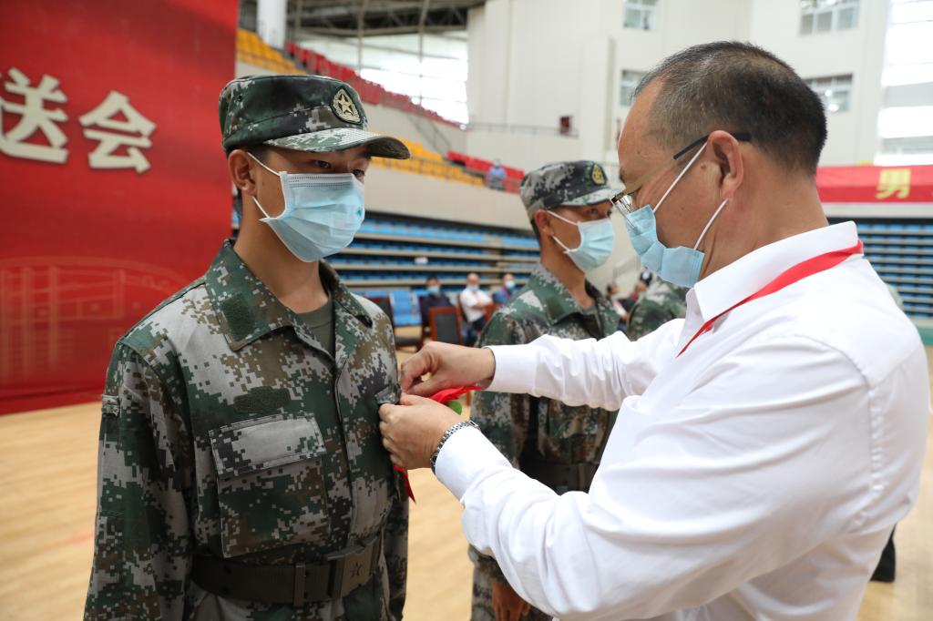 令狐荣锋指出,重视国防教育是我校的光荣传统,国防教育是我校落实“立德树人”根本任务的特色抓手,由于学校国防教育工作成绩突出,先后荣获教育部、中宣部等国家级表彰5项,省、市、区各级各类表彰数十项。令狐荣锋希望,今年新入伍的优秀学子要按照习近平总书记给南开大学8名新入伍大学生的回信中所说的那样:“珍惜身穿戎装的机会,把热血挥洒在实现强军梦的伟大实践之中,在军队这个大舞台上施展才华,在军营这个大熔炉里淬炼成钢,书写绚烂、无悔的青春篇章!”