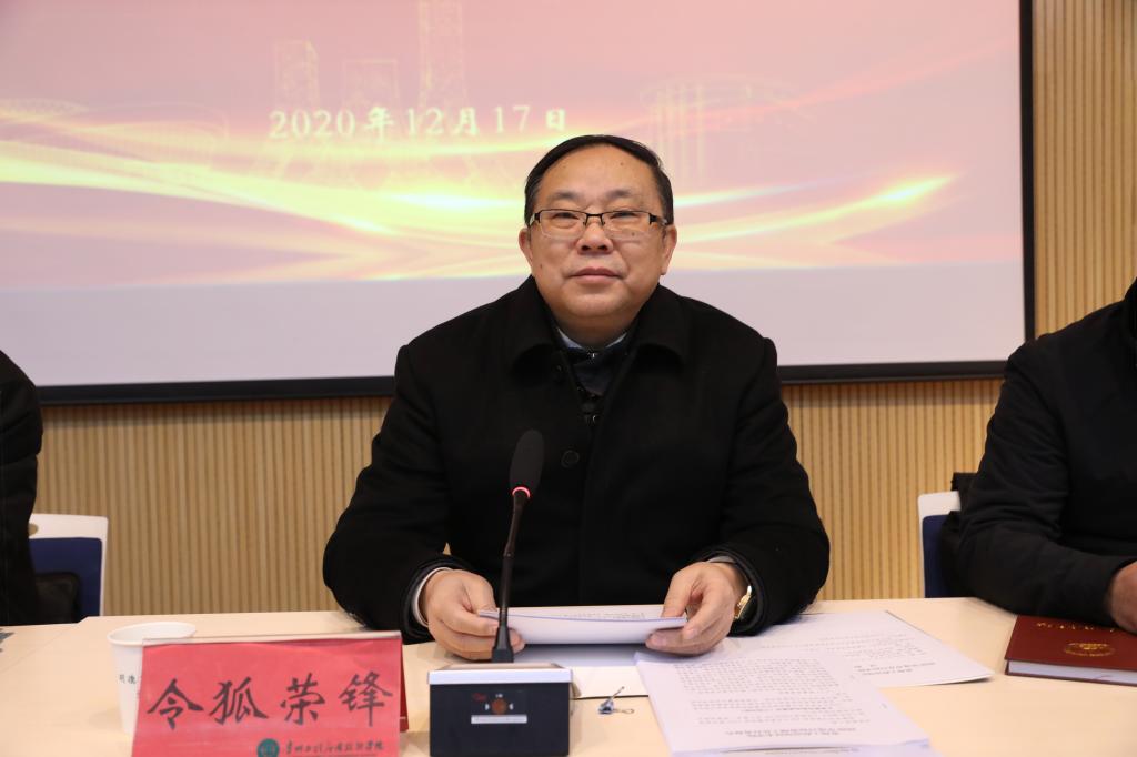 令狐荣锋代表学校领导班子作2020年度述职述廉报告。他分别从领导班子建设及运行情况、坚持和加强党的全面领导、履行全面从严治党主体责任、加强党的建设、年度工作完成情况等方面进行汇报。令狐荣锋指出,2020年以来,学校班子认真履行主体责任,不断强化党风廉政建设,推进全面从严治党深入发展,学校干部职工工作作风得到切实转变,确保了学校各项事业的有序、健康发展。令狐荣锋表示,下一步学校将按照第二次党代会的各项工作安排部署,践行教育初心使命,提升办学治校水平,努力建设特色鲜明的区域一流大学。